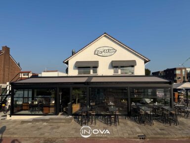 Wij van Bella Ciao Harderwijk hebben al enkele jaren een waanzinnige luifel van Inova. Vier afzonderlijk bedienbare schermen bestand tegen zon, regen maar ook wind. Want hier op de boulevard in Harderwijk kan het aardig spoken. Super degelijk en goede kwaliteit.