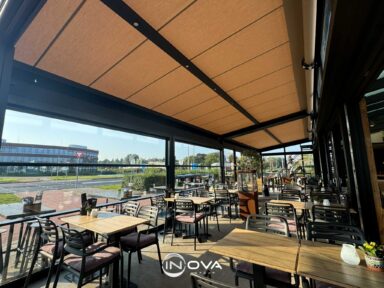 Wij van Bella Ciao Harderwijk hebben al enkele jaren een waanzinnige luifel van Inova. Vier afzonderlijk bedienbare schermen bestand tegen zon, regen maar ook wind. Want hier op de boulevard in Harderwijk kan het aardig spoken. Super degelijk en goede kwaliteit.