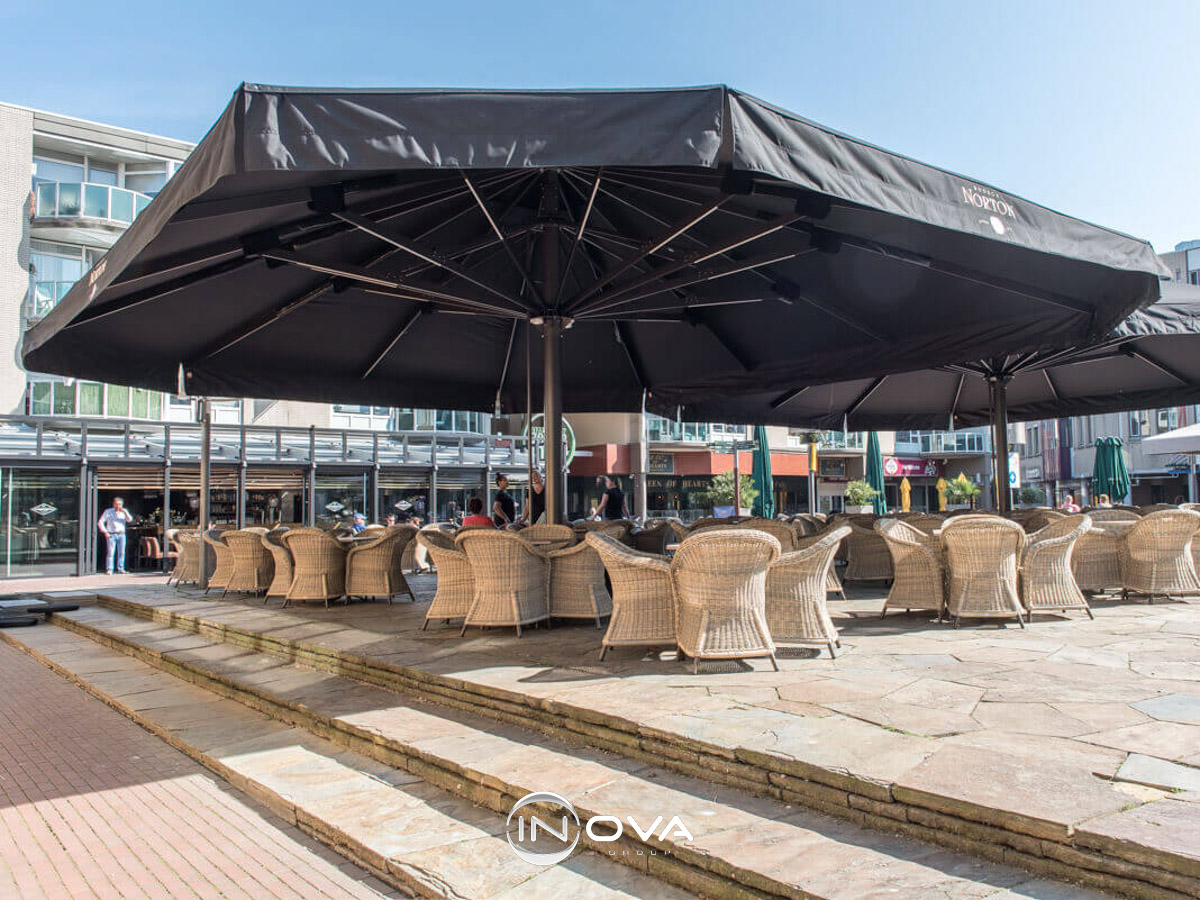 Toch opzoek naar een ander type parasol? Inova beschikt over een uitgebreid assortiment horeca parasols, zweefparasols en design parasols.