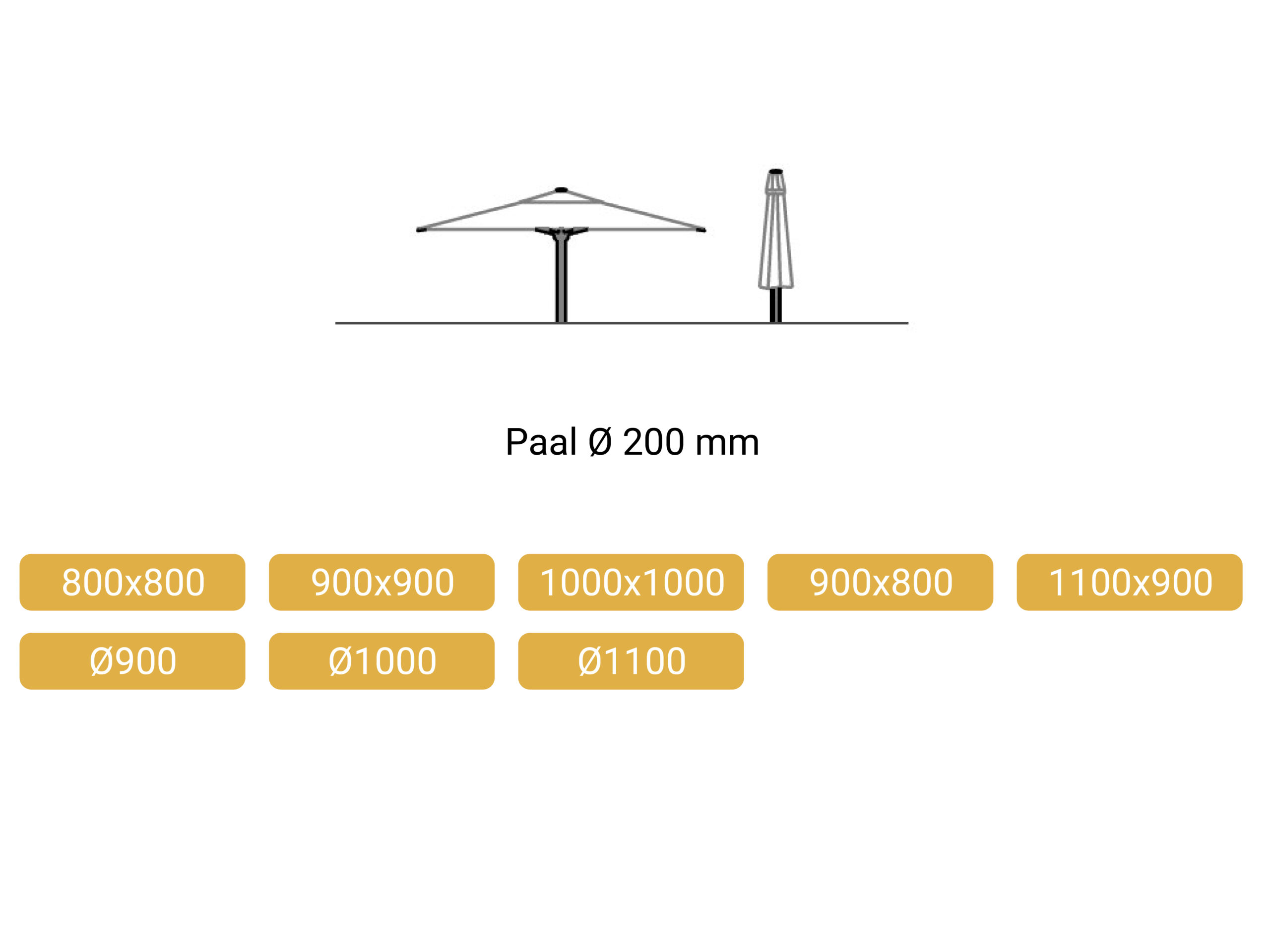 Stel jouw gewenste parasol samen door het toevoegen van het ideale onderstel, bijpassende accessoires en afwerkingen die perfect aansluit bij jouw terras.