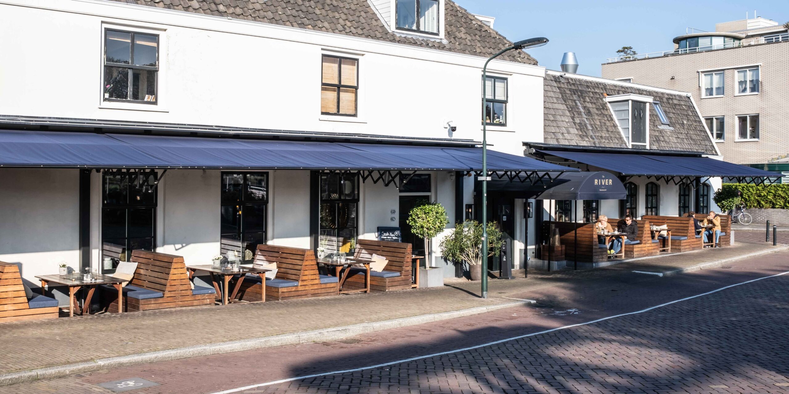 Het terras van Restaurant The River ligt op een unieke locatie aan het water, wat zorgt voor een sterke aantrekkingskracht op gasten, maar tegelijkertijd ook specifieke uitdagingen met zich meebrengt. Door wisselende weersomstandigheden zoals wind, regen en felle zon is het terras niet altijd optimaal te benutten, terwijl juist het open karakter en het vrije uitzicht op de Vliet behouden moeten blijven.